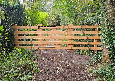 Voor Bungalowpark Vredelust op Texel hebben we het toegangshek naar de hei vernieuwd. De nieuwe poort is vervaardigd uit duurzaam douglashout, met extra dikke palen en planken om het intensieve gebruik te ondersteunen. De scharnieren zijn verstelbaar, wat zorgt voor een soepele werking en eenvoudige afstelling.