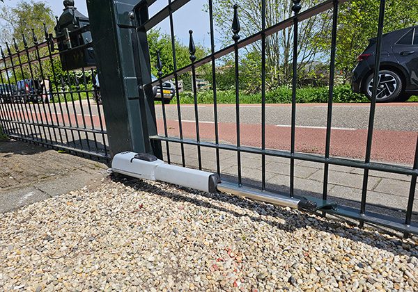 Vervangen van de bestaande automatisering van een dubbele draaipoort door een FAAC 415 24V set met nieuwe besturing en integratie van een Apport GSM-module. Hiermee kan de klant de poort eenvoudig openen/sluiten via telefoon (bellen/app) en eventueel geautoriseerde gebruikers beheren.