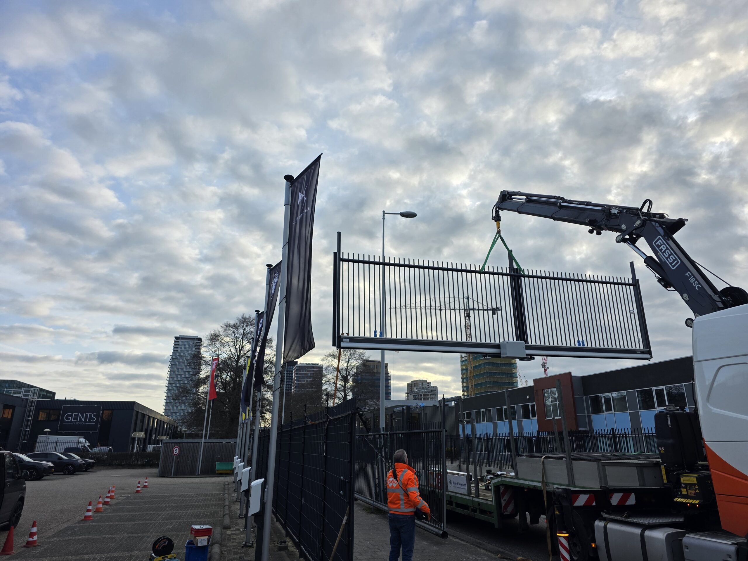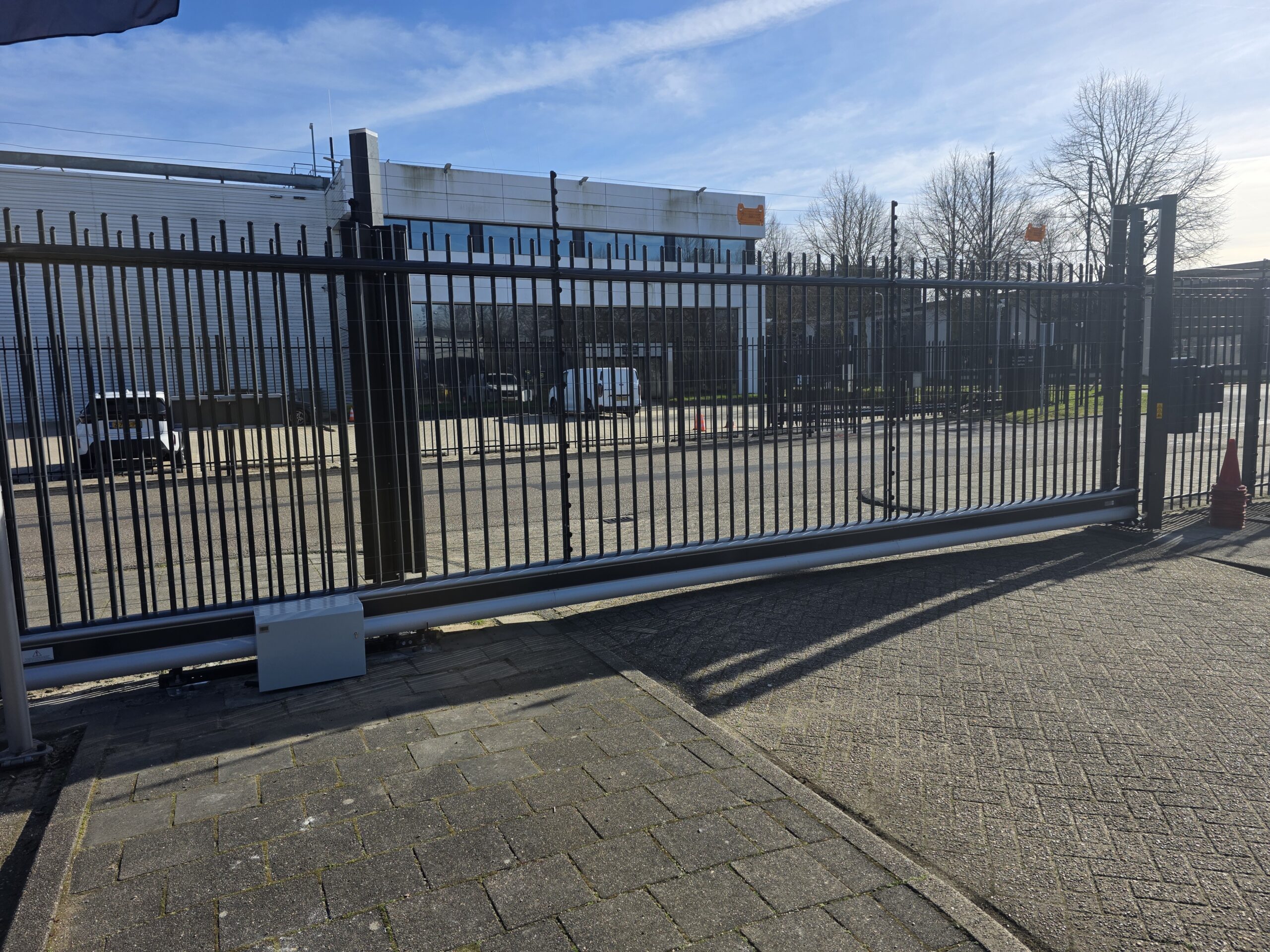 Voor Stellantis Nederland hebben wij de bestaande verouderde stalen schuifpoort vervangen door een nieuwe aluminium schuifpoort, inclusief door ons aangebrachte electric fence-beveiliging.